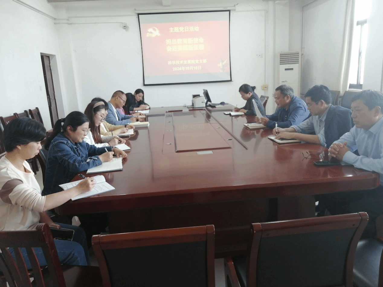 10月10日下午,科学技术发展院党支部于致远楼508室开展“担当教育新使命 奋进强国新征程”主题党日活动,并到龙门实验室科技创新成果展厅参观学习。会议由党支部书记于华主持,支部全体党员参加。