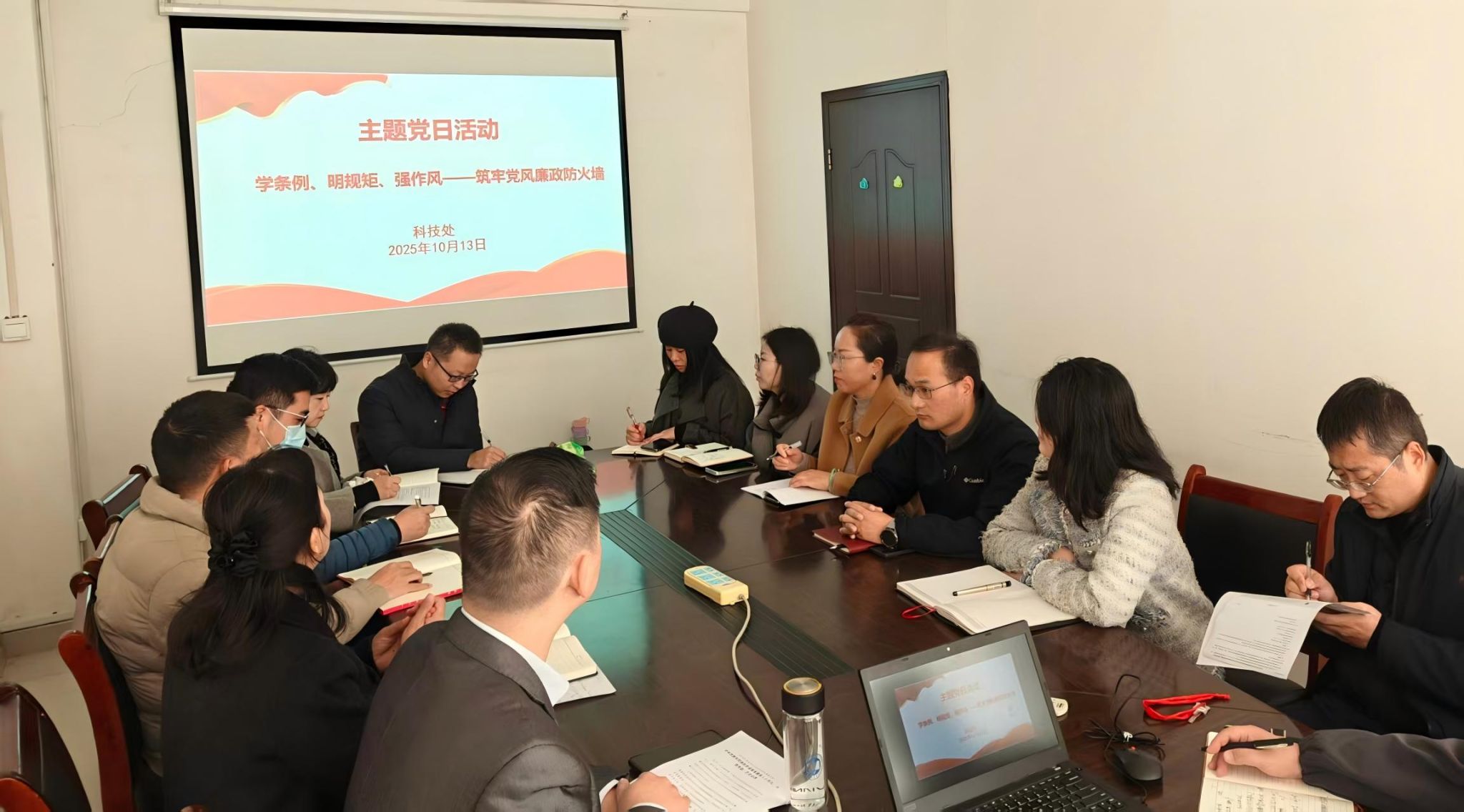 为深入推进党风廉政建设,切实筑牢科研领域廉洁防线,2025年10月13日上午,我校科研处组织全体党员开展“筑牢党风廉政防火墙”主题党日活动。活动由科研处党支部于华处长主持,全体党员参会。