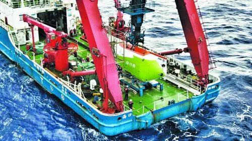 “探索一号”科考船回收“奋斗者”号全海深载人潜水器。新华社发(杨宁军摄)